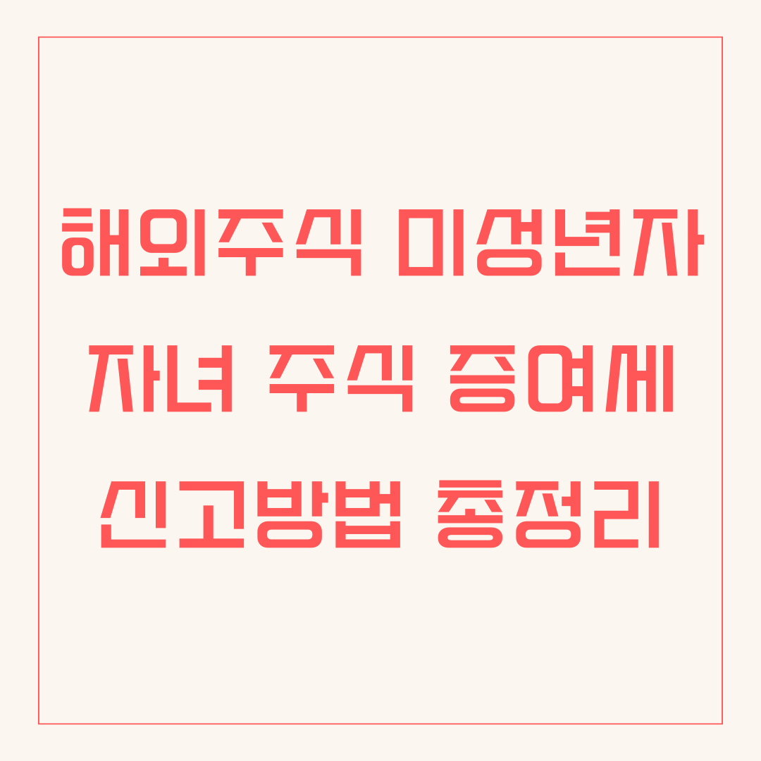해외주식 투자 열풍이 불면서 자녀에게 미리 증여하여 재산을 증식시켜주려는 부모님들이 늘고 있습니다. 하지만 해외주식 증여는 국내 주식 증여보다 복잡하고 챙겨야 할 것이 많아 꼼꼼한 준비가 필수입니다. 증여세 신고, 어떻게 해야 할지 막막하신가요? 이 글 하나면 해외주식 증여세 신고, 더 이상 어렵지 않습니다! 미성년자 자녀에게 해외주식을 증여할 때 알아야 할 모든 것을 담았습니다. 증여세 계산 방법부터 신고 절차, 절세 팁까지, 지금 바로 확인하세요!