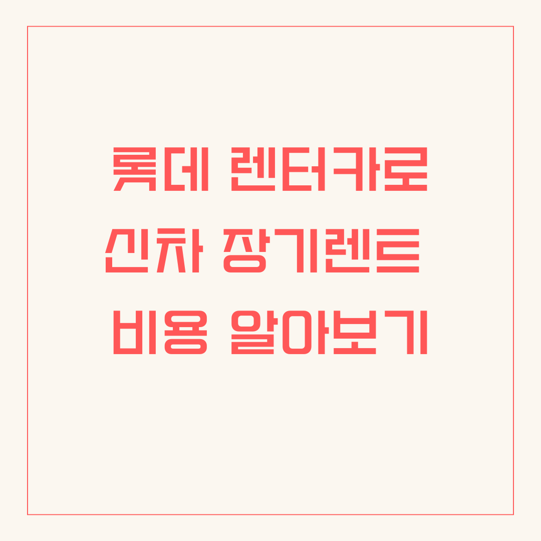 롯데 렌터카 신차 장기렌트, 지금 바로 상담하세요!