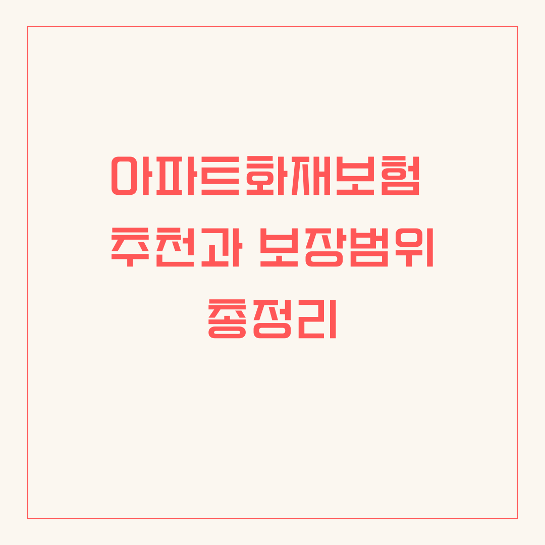 이 글에서는 아파트 화재보험의 개념과 추천할 만한 보험사, 주요 보장 범위, 가입 시 고려할 사항 등을 자세히 설명합니다. 아파트 화재보험을 고민하고 계신 분이라면 끝까지 읽어보시길 바랍니다.