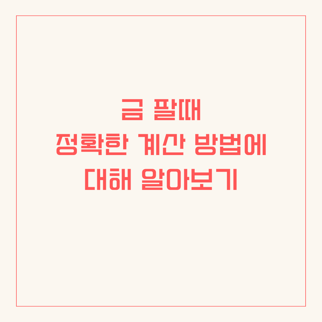 금 팔 때 손해 안 보는 계산법! 꼭 알아두세요