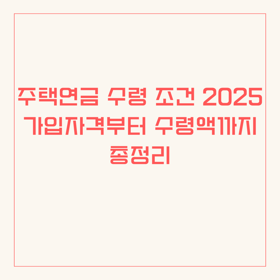 주택연금 수령 조건 2025 가입자격부터 수령액까지 총정리
