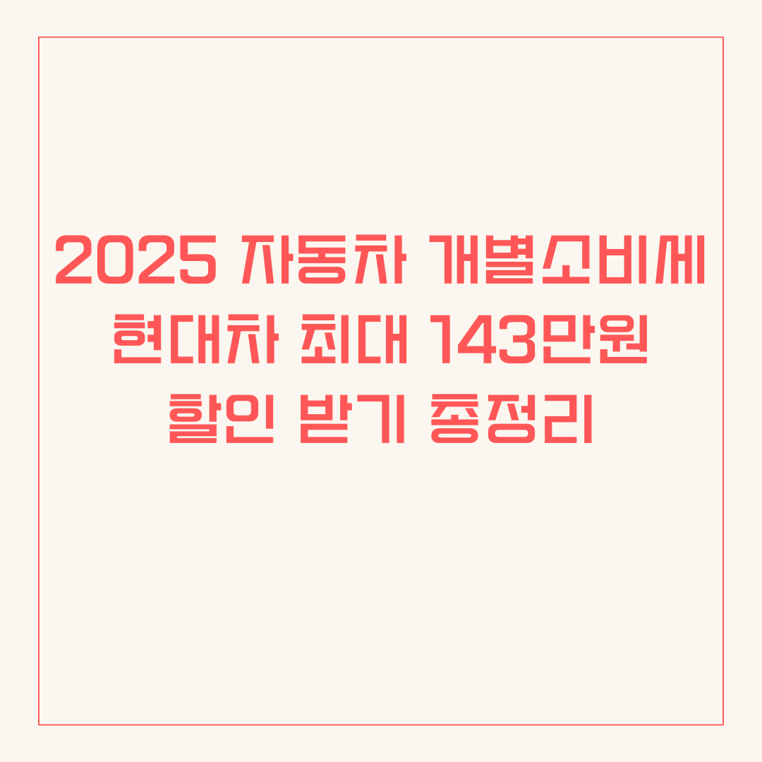 2025 개별소비세 인하 자동차 혜택 총정리 현대차 최대 143만원 할인