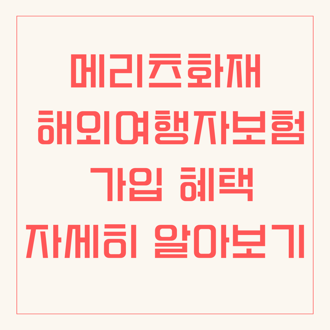 메리츠화재 해외여행자보험 가입 혜택 완벽 분석