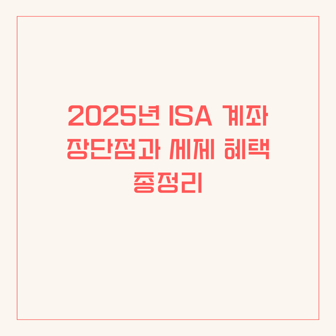 이 글에서는 ISA 계좌의 주요 장점과 단점, 그리고 2025년에 달라진 세제 혜택에 대해 상세히 안내해드립니다.