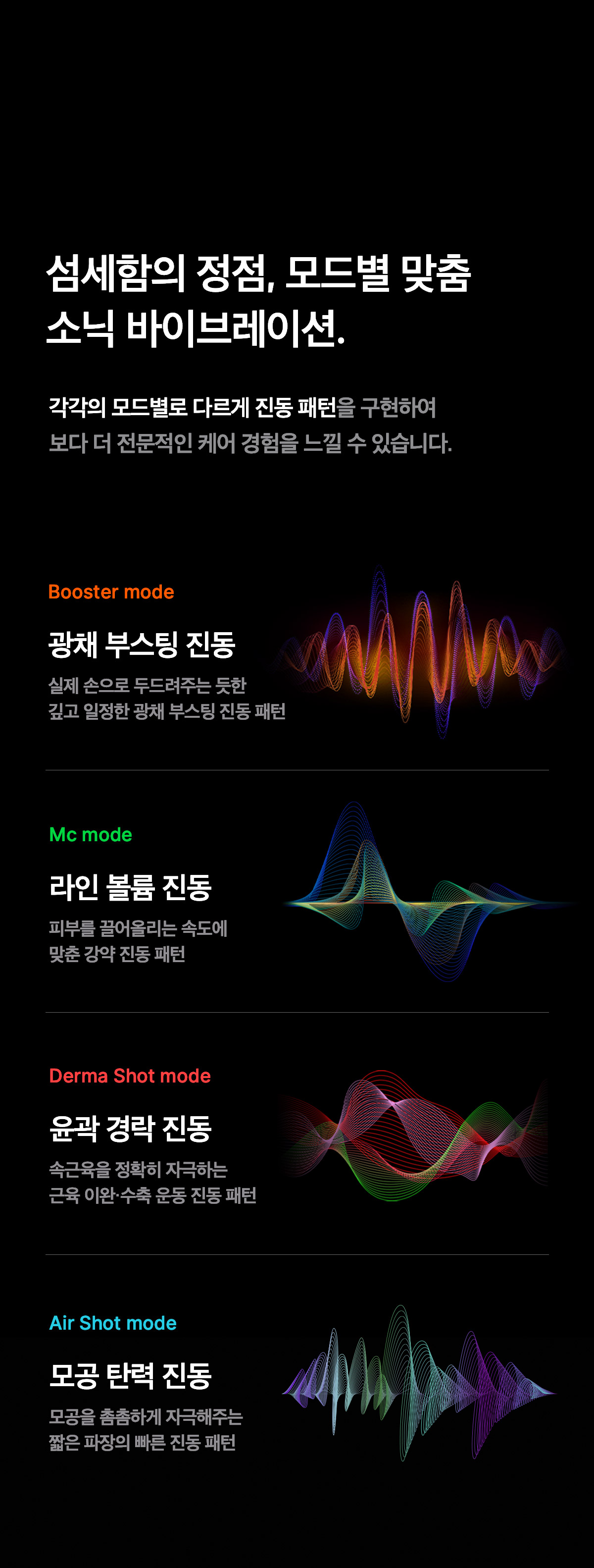 각 모드에 최적화된 진동 패턴을 통해 더욱 전문적인 케어를 경험할 수 있습니다.